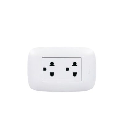 S/26.00Placa tomacorriente doble universal con tierra tipo empotrable. Para instalaciones domésticas de uso interno. Tiene bornes con doble agujero para derivaciones. Incluye accesorios de fijación.